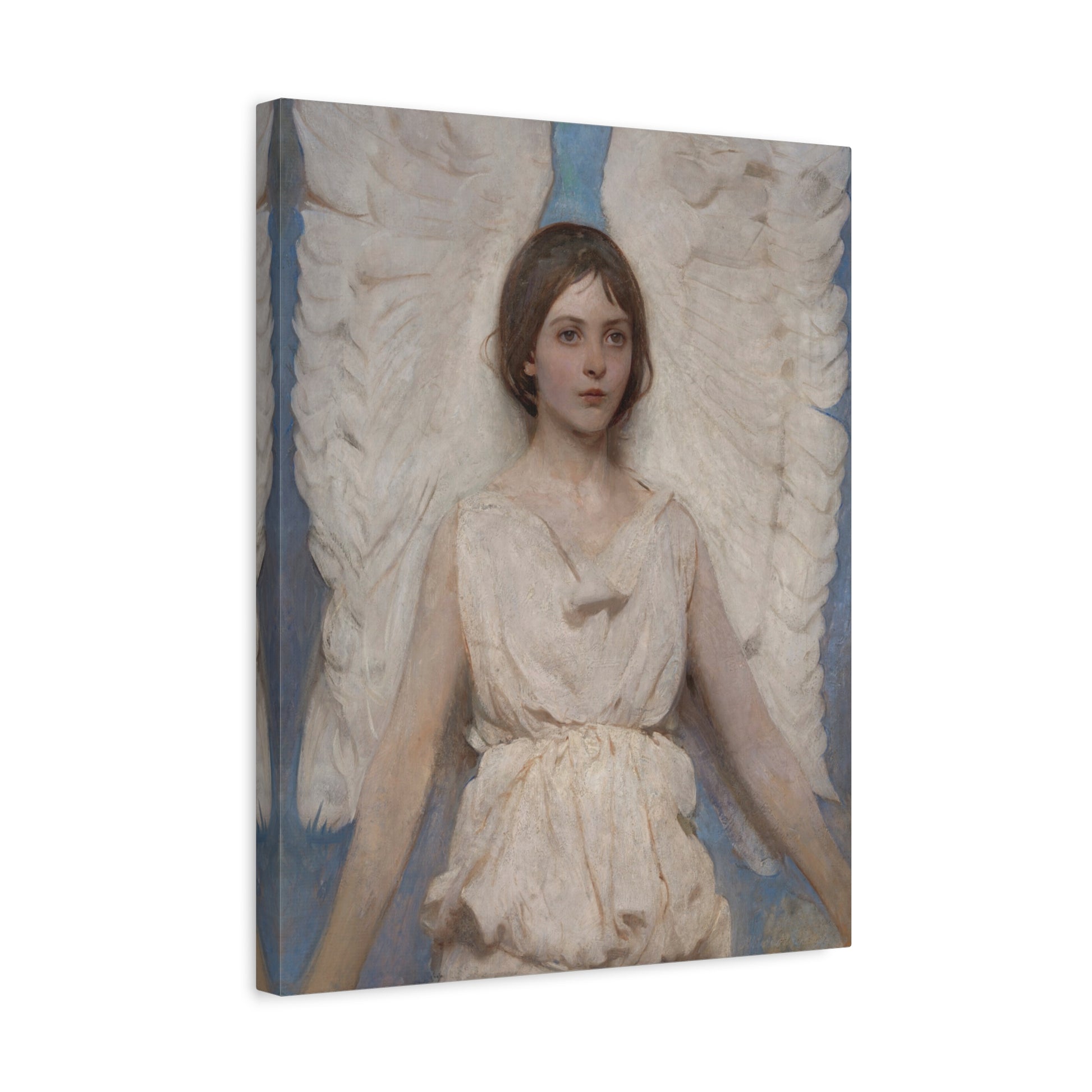 Abbott Handerson Thayer’s Angel shimmers with grace and quiet strength—a portrait of his daughter Mary transformed into a luminous allegory of hope and spiritual longing. Cloaked in radiant white wings, the young figure embodies innocence and solace, hovering between the earthly and the divine. Thayer’s innovative technique—using fingers, brooms, and even paint tubes—creates ethereal textures and a sense of transcendent light. For Thayer, angels represented not just personal devotion, but universal comfort—a spiritual presence for times of grief and uncertainty, as he painted his most iconic angels during years marked by personal loss. Angel remains an enduring testament to Thayer’s belief in beauty as a refuge and blessing.